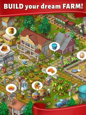 A ton of different species and types of animals, plants, trees and bushes, production buildings, goods, items, recipes, interesting and unique quest tasks for hundreds of hours of exciting game available for breeding. World holidays and unique decorations for your farming town. Various competitions and duels with friends and other players. Worldwide trade with various people on the global map. Caravans and routes. Various delivery methods. The ability to help your friends on their farms and receive help from them. Unique buildings available to unique players. Find out the secret of how to build them. You are the happy farmer in Jane's Farm game.