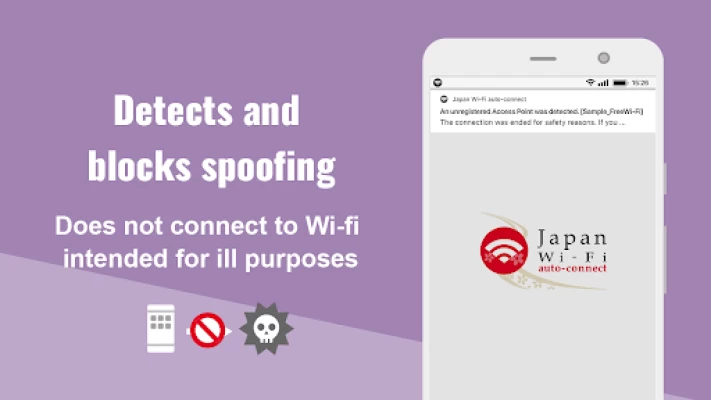 Does not connect to the so-called "spoofing access points". These Wi-Fi points are disguised as legitimate access points, making it hard for customers using Wi-Fi to detect.