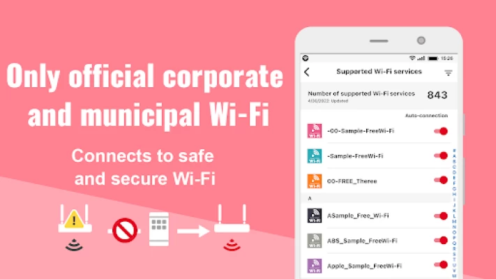 The corresponding Wi-Fi service is available at the likes of public transit and facilities at stations, airports, etc., and at trade outlets of convenience and department stores, etc. offering highly reliable free Wi-Fi service. The service will automatically connect you only to those access points that are secure, trustworthy, and from reliable providers.
