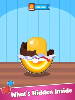* Tap the yolk (container) of the egg to reveal the surprise.