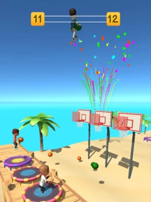 Jump on the trampoline, score the ball into the basket as many points as you can before the time runs out!