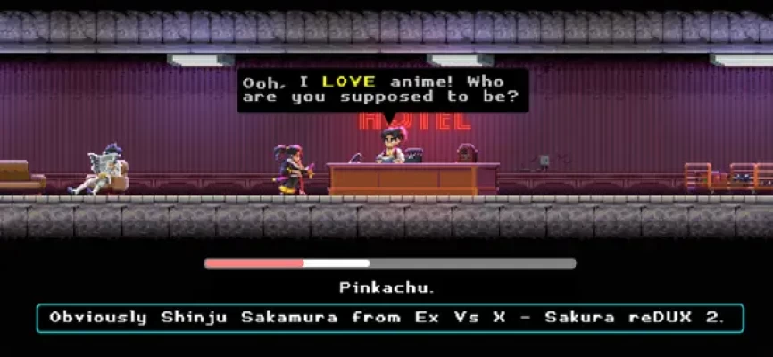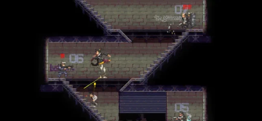 In this stylish pixel art neo-noir platformer, you're a samurai assassin facing breakneck action and instant-death combat. Attack enemies with your sword — or whatever else is at your disposal — and avoid obstacles to progress to the next level. Choose how you respond in conversations that drive the story forward between levels.