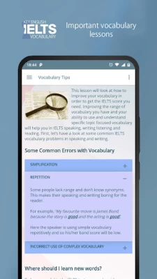 The best way to learn vocabulary is to start with the most common words. Key English | IELTS Vocabulary will teach you the most frequent words in Academic, IELTS and TOEFL English texts. It also has an IELTS Writing Task 2 section to help you develop your essay writing!