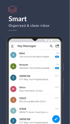 Messages are grouped intelligently based on the varying sender title. Easily see personal & organization SMS in separate tabs. You can also mark important messages as Starred and find them in a separate folder. As the name suggests, Key Messages is designed to prioritize important messages.