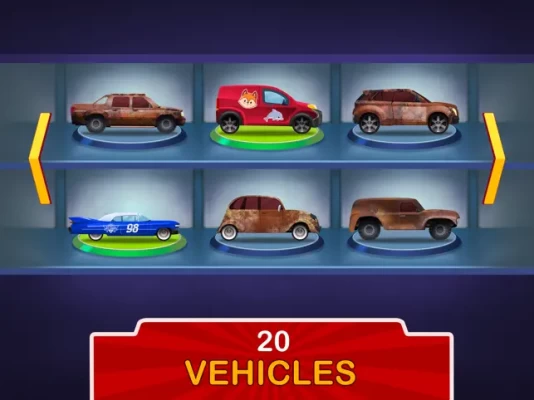 Vintage & racing cars, vans, trucks, military vehicles, and many other rusty cars are waiting for you. Hurry up, repair & clean them all!