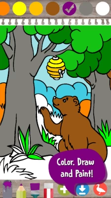 - Drawing game for kids: Kids will draw on empty canvas or on different animal shapes. Kids coloring apps for toddler has different sections. They can use various colors for drawing and can save their drawings. This section is a doodle for kids.