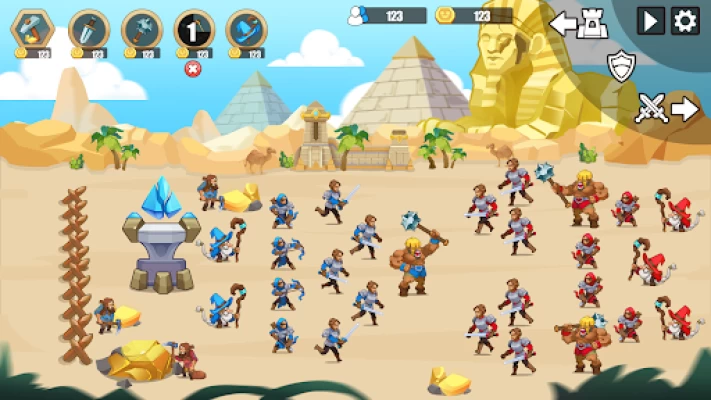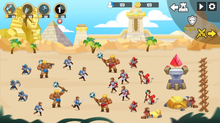 ◼️ Mine gold from the battlefield and equip the weapon of your army