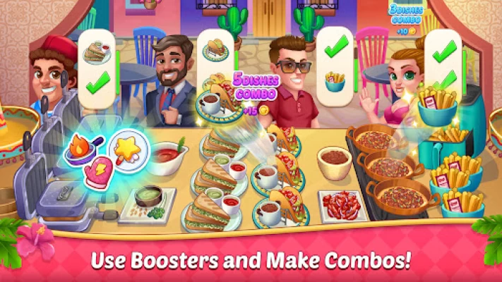 - Boosters to get you victory in this kitchen game - Double Coin, Burn Proof, Insta cook, Candy, Magic Dish, Insta serve, Second Chance, More Customer, More Time