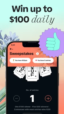 Earn points for things like taking surveys and watching ads. You can then cash them out for a bigger advance or to enter our daily sweepstakes.