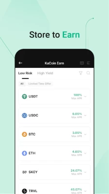 Various earn tools. KuCoin empowers you to generate passive income through lending, staking, and more with KuCoin Earn. Our AI-powered trading bots can also automate your trading experience 24/7 for emotion-free and high-frequency trading. Save time and energy and earn passive profits.