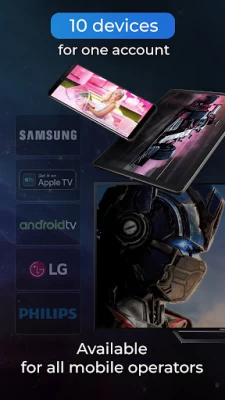 - Up to 5 devices can be connected to 1 account: smartphone, tablet, Smart TV, set-top box or computer;