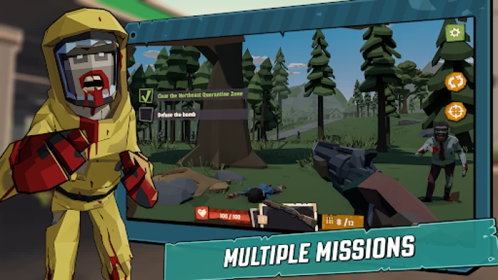 Immerse yourself with stunning polygon style visuals that bring each level and character to life. Experience the fear and excitement of the zombie shooter as you navigate the battlefield. Dive into the ultimate FPS shooting game.