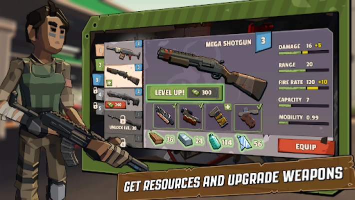 Each quest is guaranteed to earn resources or cash. Collect powerful weapons and upgrade them to increase your firepower and add perks. Build your arsenal with an array of deadly guns, each perfect for dispatching the undead with precision.