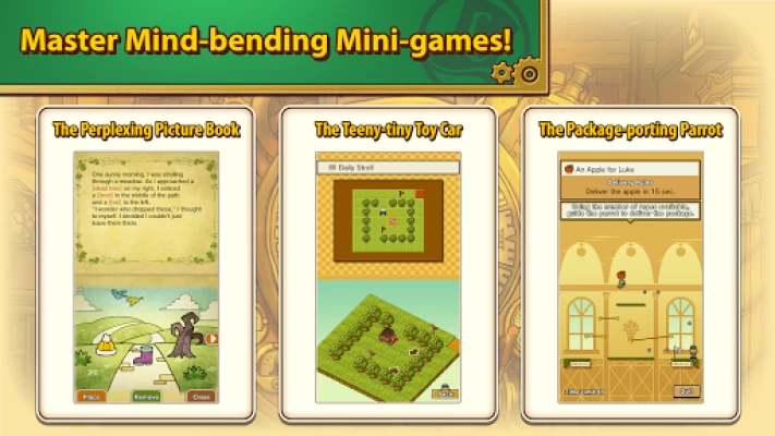 • Engaging mini-games that include a strange picture book, a toy car puzzle, and a package delivering parrot