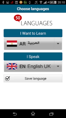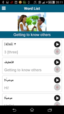 Learn Arabic! - "50 languages Arabic" (www.50languages.com) contains 100 lessons that provide you with a basic vocabulary of the Arabic language. This free app has 100 lessons. With no prior knowledge, you will learn Arabic and fluently speak short Arabic sentences in real-world situations in no time.