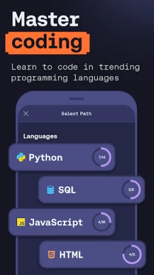 With Mimo's Learn Coding and Programming app: Python, JavaScript, SQL, HTML coding, you'll be able to: