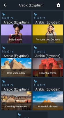 Bluebird brings language learning to the world’s population in an unprecedented way. You can learn Egyptian Arabic from any of 146 narration languages.
