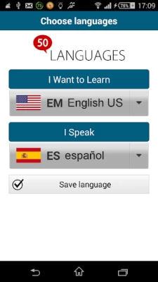 Learn English (USA) now! - "50 languages English" (www.50languages.com) contains 100 lessons that provide you with a basic vocabulary of the English language. This free app has 30 lessons. With no prior knowledge, you will learn US-English and fluently speak short English sentences in real-world situations in no time.
