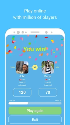 Playing online is also one of the best ways to test your knowledge of English vocabulary. Play in duo mode with your friends or other players. The app features useful functions that enable you to do exercises and take tests, or only study what you have gotten wrong. You can also skip the English for Beginners course and move to more advanced English lessons.