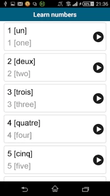 Learn French! - "50 languages French" (www.50languages.com) contains 100 lessons that provide you with a basic vocabulary of the French language. This free app has 30 lessons. With no prior knowledge, you will learn French and fluently speak short French sentences in real-world situations in no time.