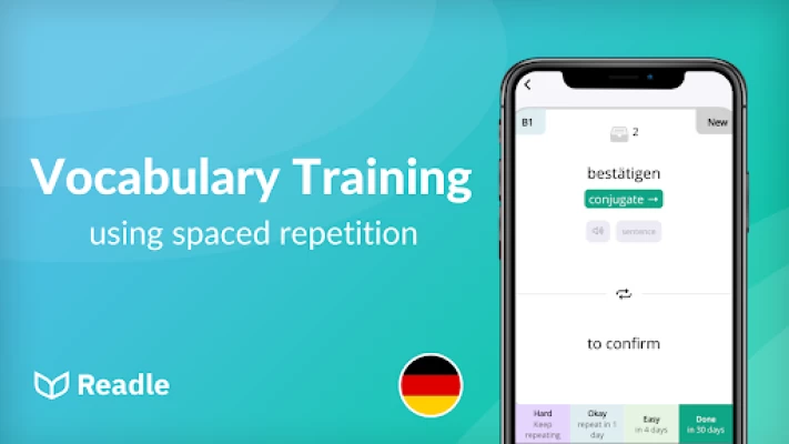 Build your very own flashcard deck from the German stories you read. Readle uses spaced repetition to make you never forget.