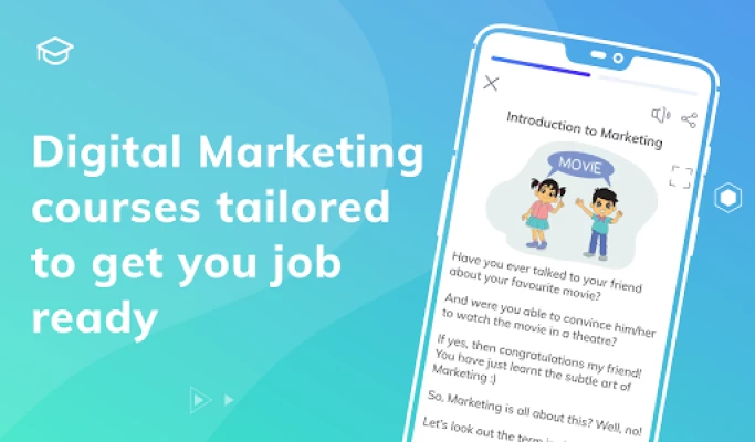 On the app, you will be able to take different courses on digital marketing & online marketing for free. You will know who the course is meant for and how much salaries you can expect on completing the course.