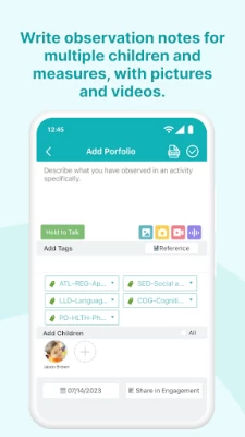 3. Uses preset portfolio tags to help preschool teachers and childcare providers track and organize children’s developmental observations and assessment evidence. There is a set of built-in Early Learning Standards can be used. You can always contact help@learning-genie.com to customize and upload your custom set of tags. The portfolio tool also provides a quick summary of what has been observed and unobserved in a specific period of duration to help teachers stay on track.
