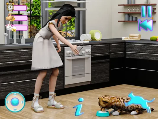 Our adventure 3D game allows you to select a home grown animal of a desired breed, to play with friends and their cute pets online in real time , to be best friend with them, to create real clans and even to preserve your family. The higher level is your little kitten and its family, the more breeds will be opened for you.The kitten will not sit in one place, he will be constantly in motion, like a real one. This little kitten will run after a toy, which you throw.