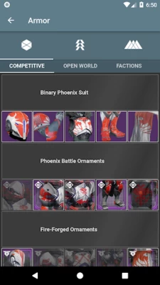 - track your exotic collections, cosmetic collections, armor and weapon sets