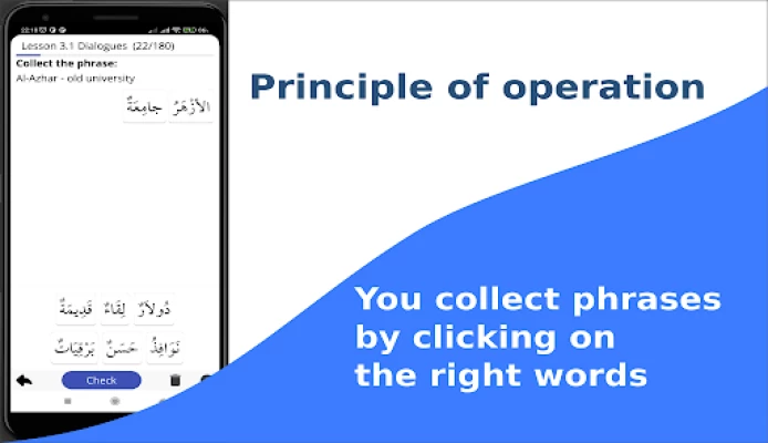 The essence of the whole application is that you need to collect phrases in Arabic. With us you will learn Arabic in a short time step by step.