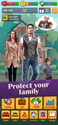CONTROL your health. It’s a life simulator after all - check your health and happiness bars and look after your health every day: don’t forget to take your pills and do workout to survive until you achieve all your goals. It would be a waste to die from hunger or spoiled sood, wouldn’t it?