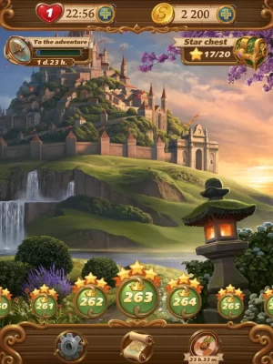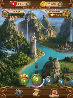 Welcome to the amazing magical world of solitaire! Here you can make yourself at home, playing layouts on a tavern table by the fireside, or in the shade of an oak tree by a majestic rushing waterfall. Your fairy helper will guide you through this magical world full of mystery and ancient secrets.