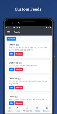 Custom Feeds - Create unlimited feeds to see only the stats important to you. If you want to see only stats for goals on your home page you can build your goals feed.