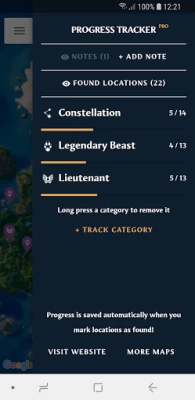 • Progress Tracker - mark locations as found and track the progress of your collectables.