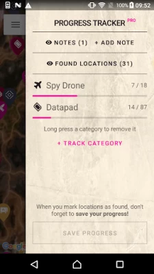 FEATURES: • Over 300 locations - data pads, spy drones, ark chests, wasteland wizard spawns & more! We're adding more locations as we find them! • Quicksearch - just type the name of a location to quickly find what you're looking for. • Sync progress with the website: https://mapgenie.io/rage-2 • Progress Tracker - mark locations as found and track the progress of your collectables. • Take Notes - mark places of interest by adding notes to the map.