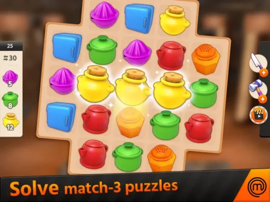 Progress by completing the cerebral Match-3 puzzles and impress the judges with your skill and precision in crafting the finest meals and desserts.