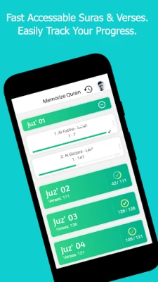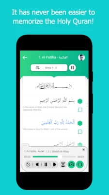 - Short-Breaks after recitation to repeat after the reciter and Loop-Mode to memorize efficiently