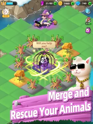 Merge Animals is a kind of casual puzzle game that adopts merged gameplay, whose goal is to merge items by various skills and player’s wisdom, defeat the witch, rescue all the small animals, build castles for animals, and regain their paradise.