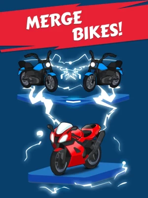 Merge Bikes to create better ones. Then, take them out to the race track and earn money every single time they cross the finish line! Use your earnings to improve your central garage and create an idle empire! Become the richest in the whole world! In this best merge game ever.