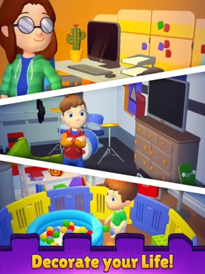 In Merge Life, you will decorate your child’s room as they age from baby to adult! Become obsessed with endless interior design projects, but don’t forget about the child's needs, as he’ll start crying and misbehaving. Your goal is to merge items to complete “orders” for your child, like a bottle for the hungry baby or a toy. And as you complete orders you’ll get golden stars (for being a good parent!) that you will use to upgrade your babies bedroom and accessories!