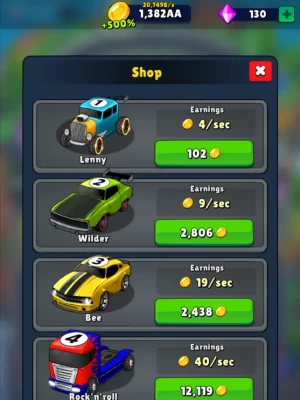 The gameplay is very intuitive: merge the same cars together into advanced one and earn money for each finished circuit. Improve your cars, gain new slots and expand your collection to get more money.