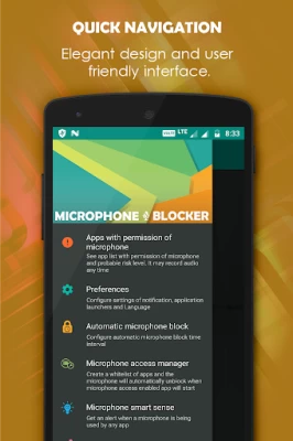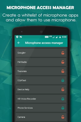 ✔ Microphone access manager for create a white-list of microphone apps and allow them to use microphone. (Pro feature, free version has limited access)
