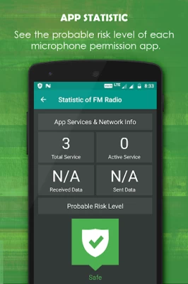 ✔ See each microphone permission app statistic and probable risk level.