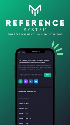 Thanks to our cloud mining infrastructure, you can earn 15% of your friends' earnings and earn passive income by using our reference system, not just mining.