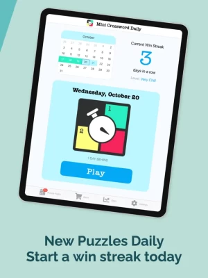 Mini Crossword Daily is a daily mini-crossword puzzle game. Solve the daily puzzle before the timer hits zero to keep your win streak alive. Stay focused as the screen changes color and the clock ticks down. Do you have what it takes?