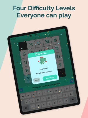 Whether you've never played a crossword puzzle before, you only enjoy easy crosswords, or you can complete the NY Times Sunday puzzle in a snap, there is a difficulty level that will match your playing level. If you like trivia or quizzes, you will definitely like this game.