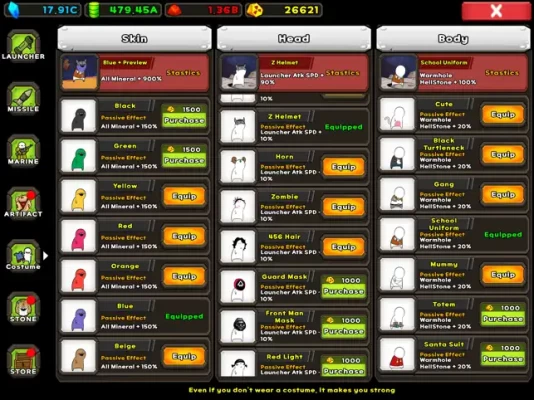 - Various costumes such as skin, hair, and clothes