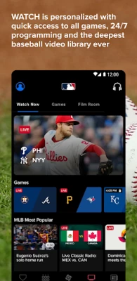 -- The Watch experience has 24/7 personalized programming, curated content collections and the deepest baseball-on-demand video library anywhere