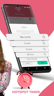 ⏲️ Unlike other free hotspot apps, Mobile Hotspot gives you the ability to set hotspot timers. When used the hotspot automatically turns off at the end of the predefined 5 minutes, 15 minutes, 30 minutes, or any custom time set by you.