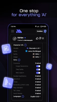 - Lifelike voice chats: Enjoy hands free virtual character conversations.